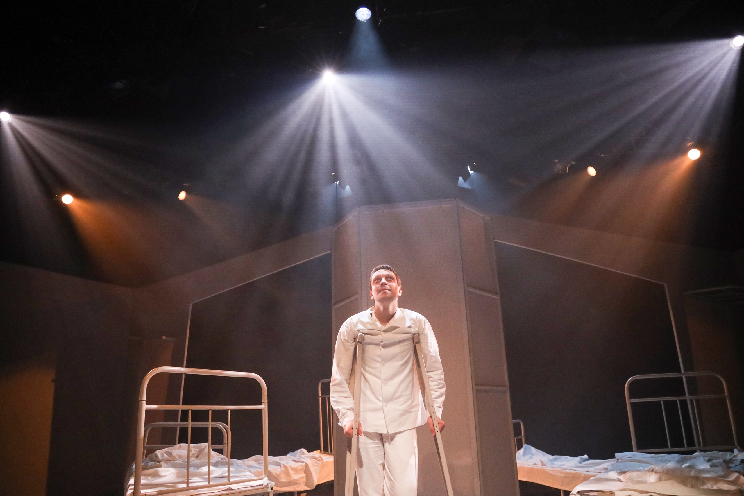 «Я буду ЖИТЬ» — это пронзительная история, разворачивающаяся в палате военного госпиталя. Пять разных мужчин, связанных войной и ранами, пытаются вернуться к жизни. Молодой парень Васёк, потерявший ногу, отгородился от всех стеной молчания и злости. Его исцеление начинается не с лекарств, а с тихого разговора, циркового фокуса и истории клоуна, который понял его боль, как никто другой. Это спектакль о том, что самое тяжелое ранение — душевное, и самое сложное — выписаться из прошлого в будущее.