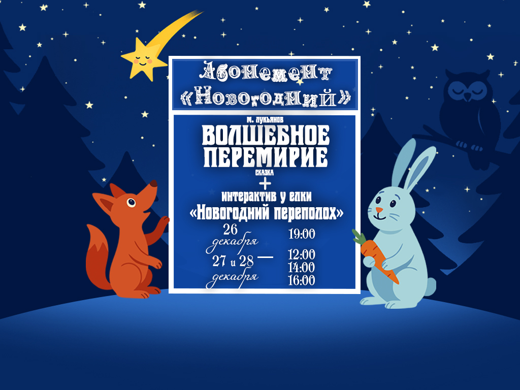 Абонемент «Новогодний» приглашает на интерактивный спектакль «Новогодний переполох» и сказку «Волшебное перемирие»