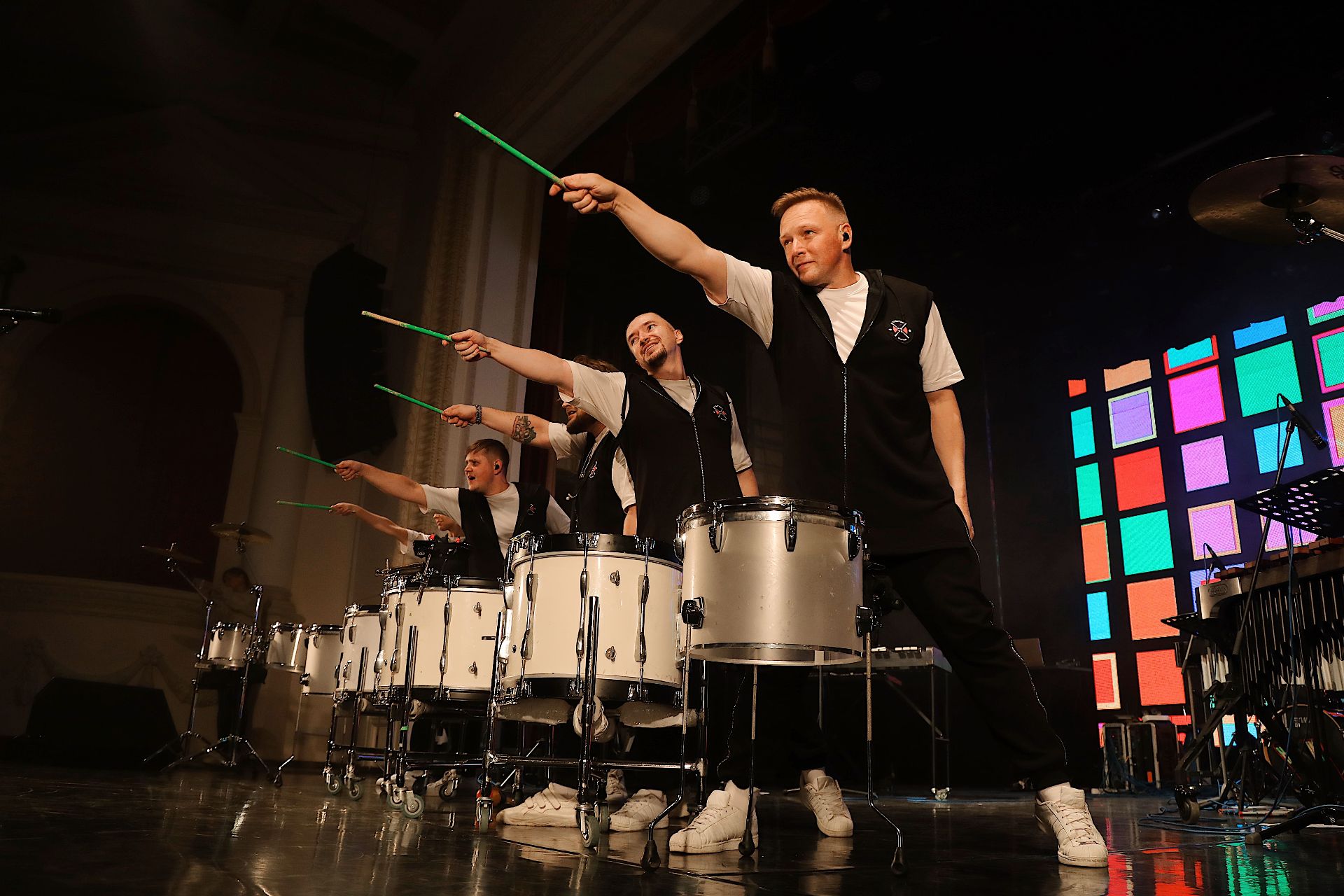 В арсенале коллектива — богатая коллекция ударных инструментов со всего света. За разнообразие мелодий отвечают маримба, вибрафон, ксилофон, глюкофоны, колокольчики. За горячие ритмы — латиноамериканская перкуссия. За мощный и энергичный бит — маршевые барабаны. За визуальные эффекты — световые бочки и светящиеся барабанные палочки.
